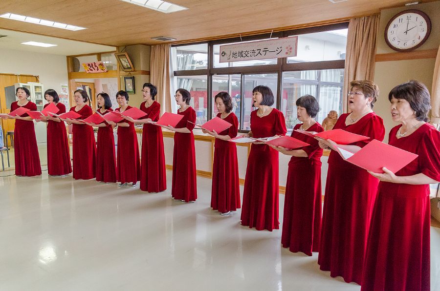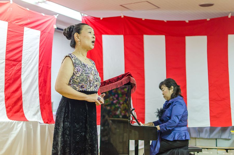 - 会場内のみんなで「上を向いて歩こう」を歌いました